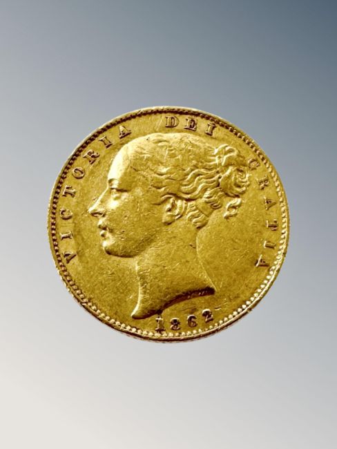 An 1862 Victorian shield back full gold sovereign