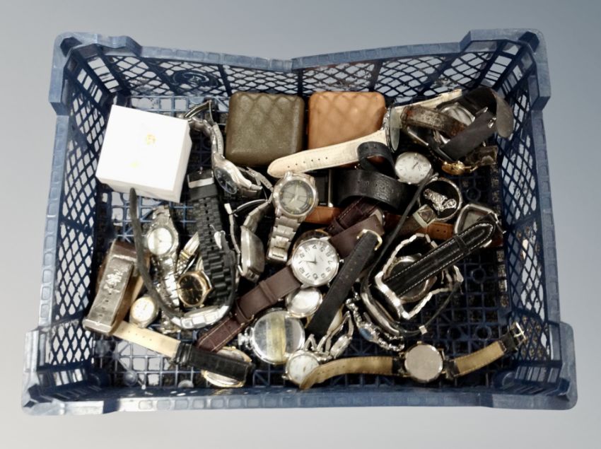 A collection of lady's and gent's wrist watches, two travel clocks, pocket watch etc