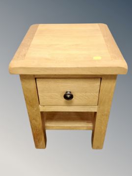 A contemporary oak lamp table fitted a drawer, width 36 cm