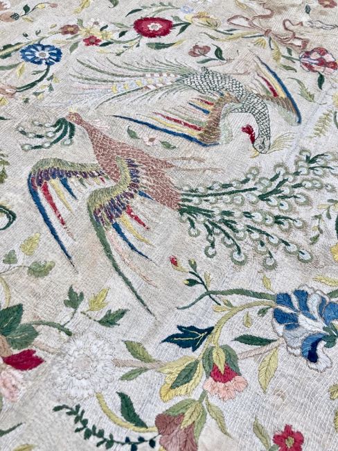 A wonderful example, the detail and quality excellent. Some areas of time staining to linen background, please see images. Colours are bright and not showing areas of severe damage, there are no clear and obvious signs of damage other than those in keeping with age such as light fraying. Please refer to images and consult the auctioneer for more information.