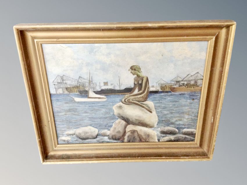 Danish School : Nude figure seated on rocks, oil on canvas, 45 cm x 33 cm