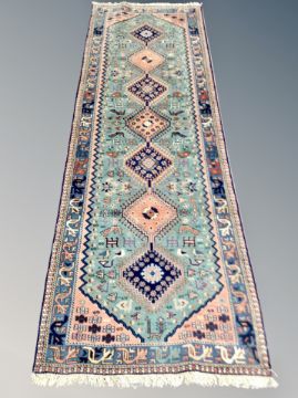 A Caucasian design runner on turquoise ground 251 cm x 80 cm