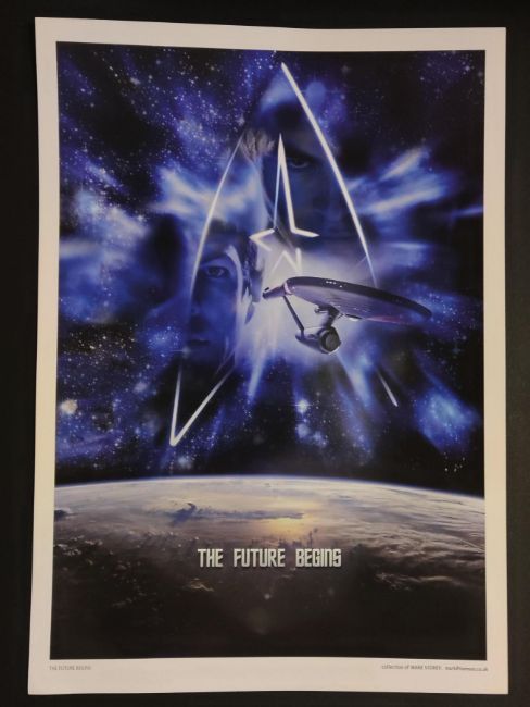 Nasa and Star Trek posters : Nasa - Galactic Cemetery and Flares of Fury (40.64 x 30.48 cm) and Mark Storey posters of Star Trek - The Future Begins and Boldly Go (48.26 x 34.29 cm).