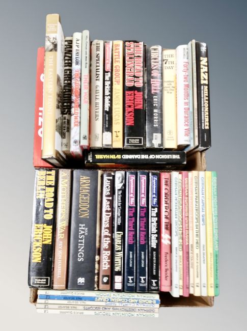 Two boxes of books relating to war, Third Reich, WW II etc
