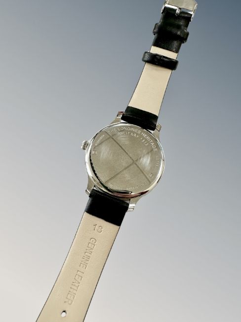 A gent's stainless steel Longines Military Heritage automatic calendar centre seconds wristwatch, ref. L2.788.4, black dial with luminous Arabic numerals, date aperture at 3 o' clock, Longines crown, case 40mm, in Longines box with instruction manual and Longines International Warranty card with purchase date 13/11/2013.