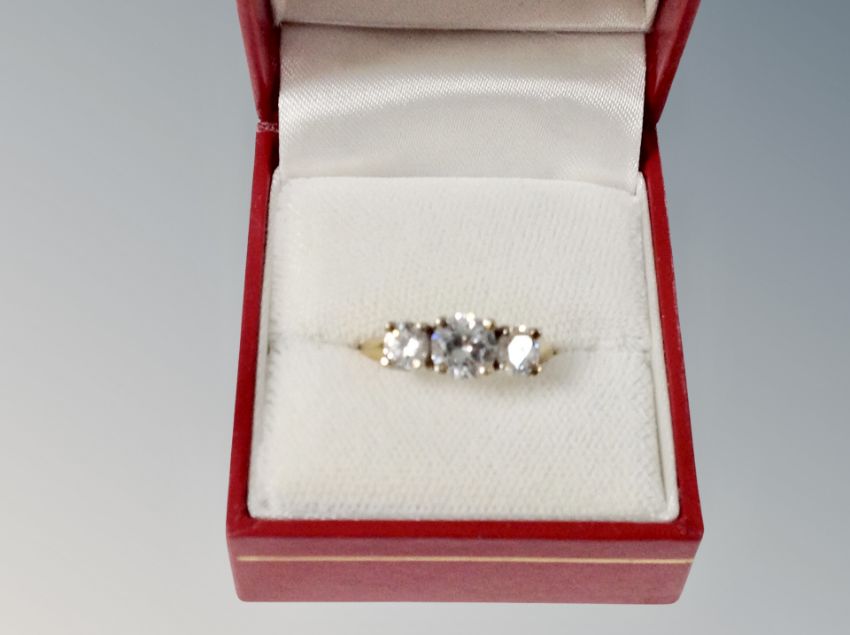 A silver three stone ring