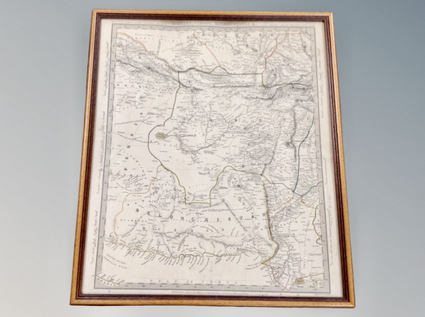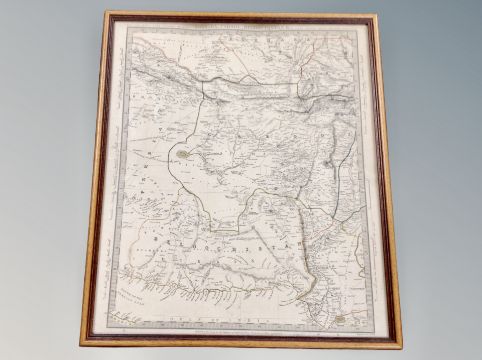 A framed map together with framed ceramic tile etc