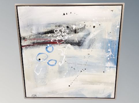 A contemporary abstract art oil on canvas initialled O M, 90 cm x 90 cm.