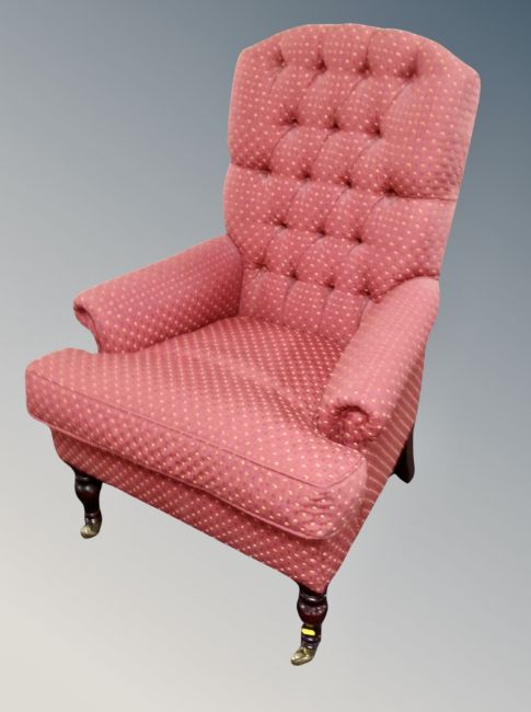 A Victorian style armchair in red buttoned fabric
