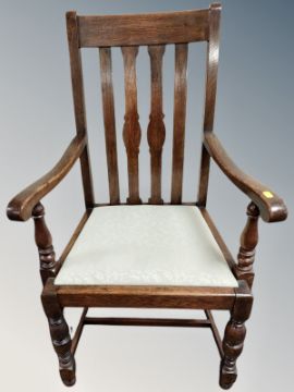 An Edwardian oak framed armchair