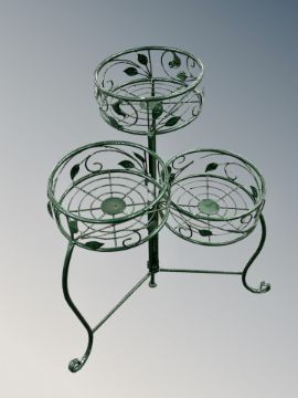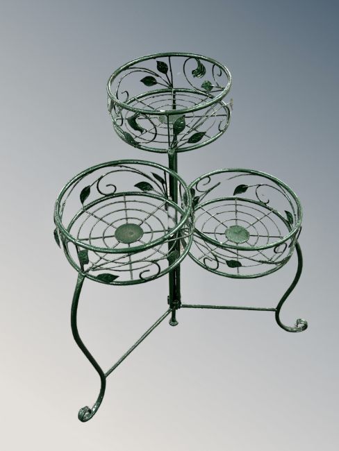A pair of folding pine tables, Edwardian plant stand, 19th century pine cracket and metal plant stand
