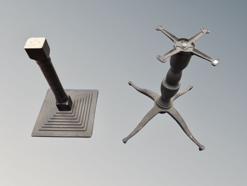 A cast iron table support and one other