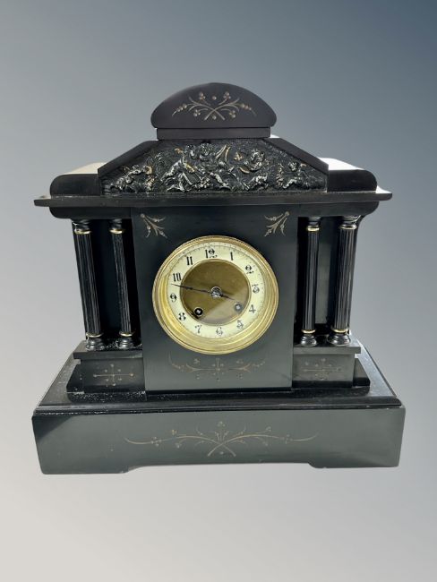 A Victorian slate eight day mantel clock, height 38 cm