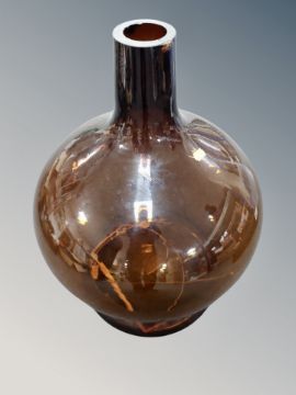 Two pairs of contemporary table lamps and a large amber glass carbouy
