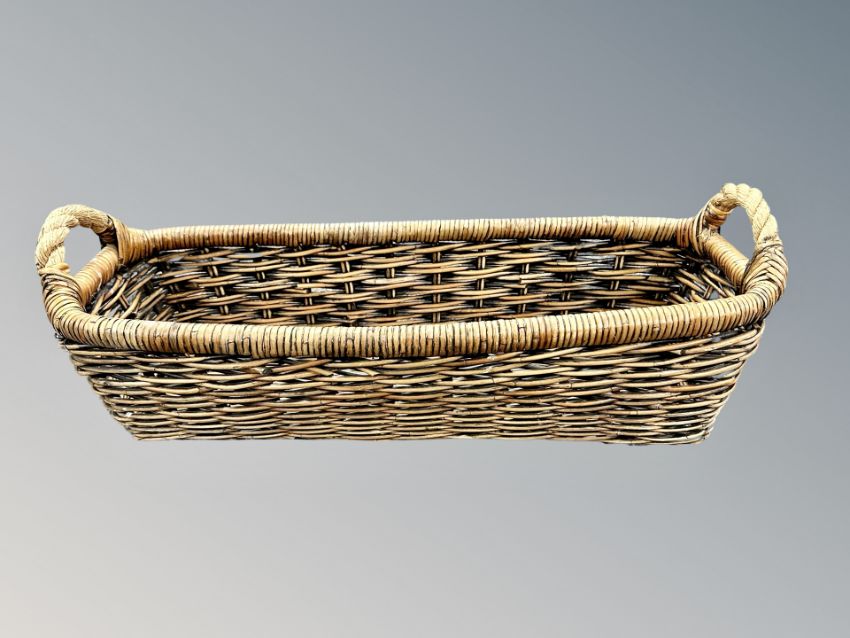 A French wicker twin-handled baguette basket, length 73 cm