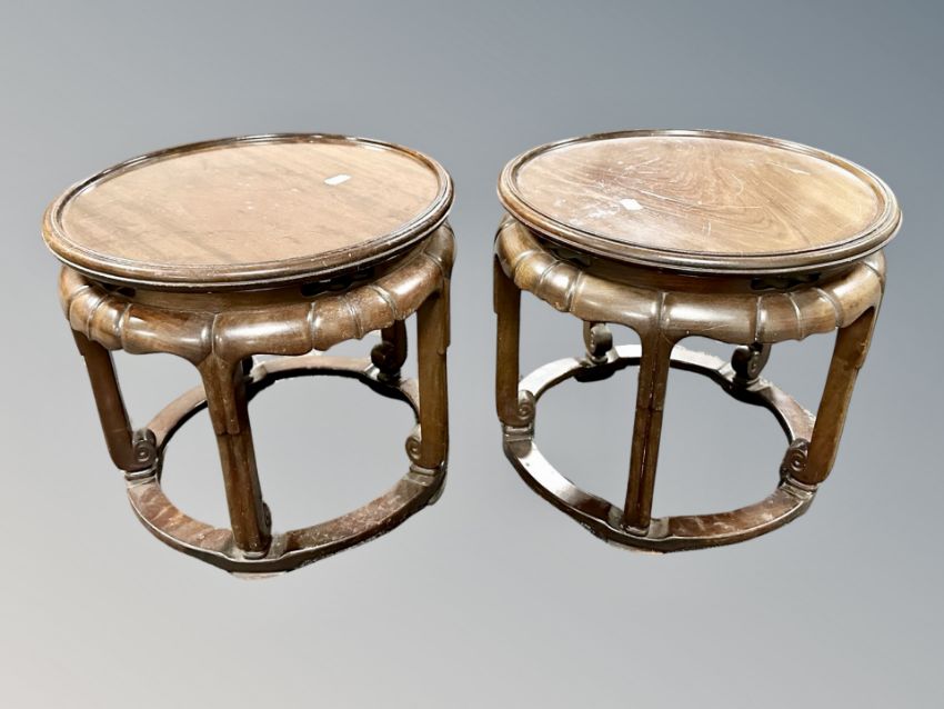 A pair of 19th century Chinese carved rosewood jardiniere stands, height 31 cm