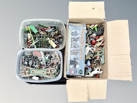 A collection of die cast metal and plastic figures including figures, soldiers, cavalry etc