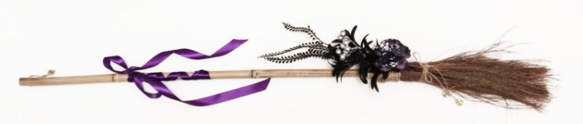 A hand decorated pagan straw Besom and a group of herbal products etc