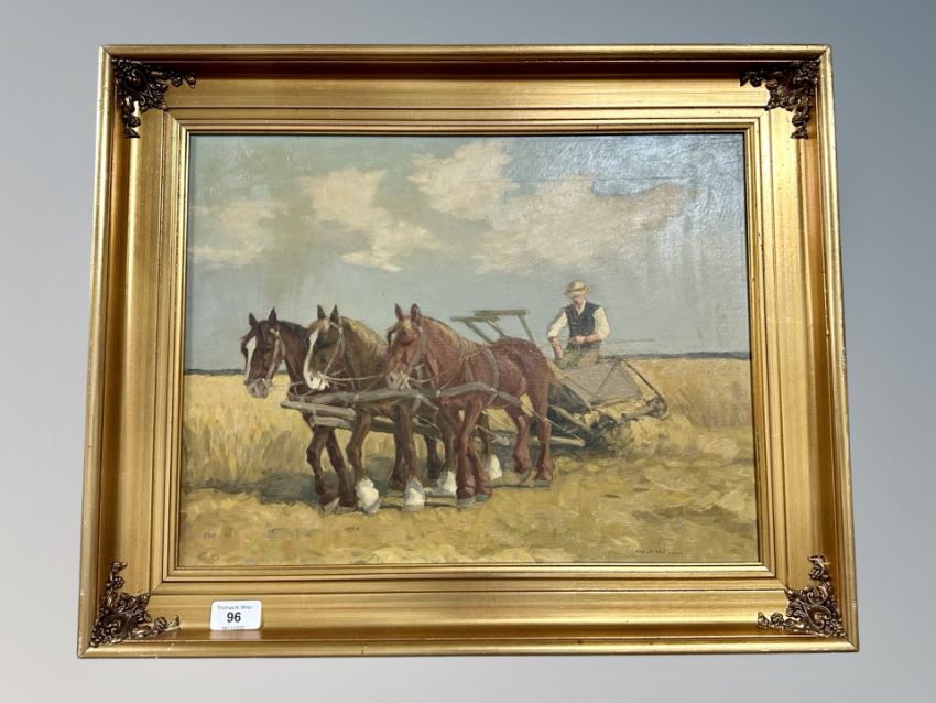 Danish School : horses with plough, oil on canvas, 46 cm x 35 cm