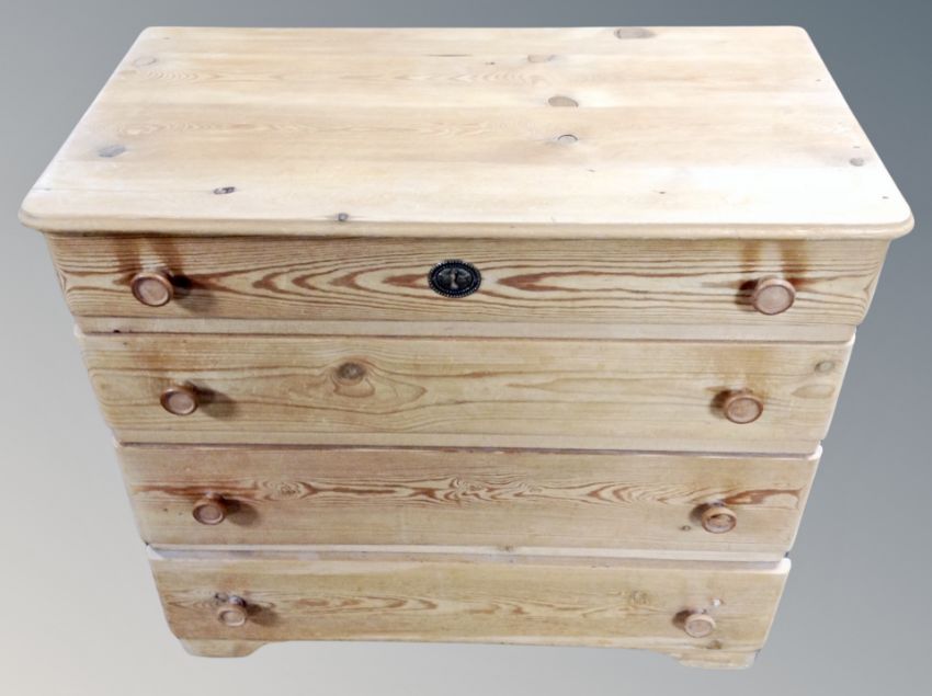 An early 20th century pine low chest of four drawers, width 75 cm
