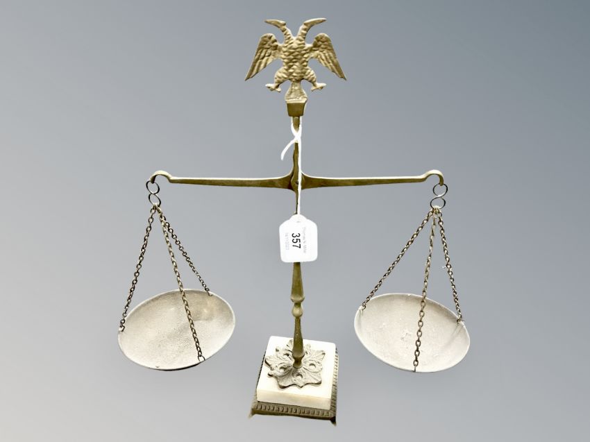 A set of brass and alabaster scales