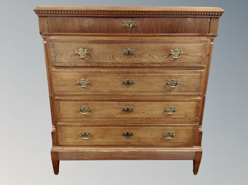 A 19th century Danish oak chest of five drawers, width 129 cm