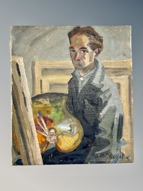 Danish School : self portrait of an artist, oil on canvas, 49 cm x 56 cm