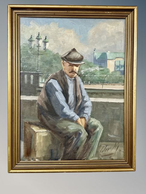 Danish school : Portrait of a gentleman smoking a pipe, oil on canvas, 28 cm x 39 cm