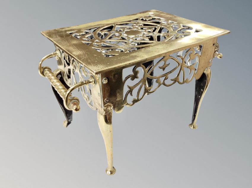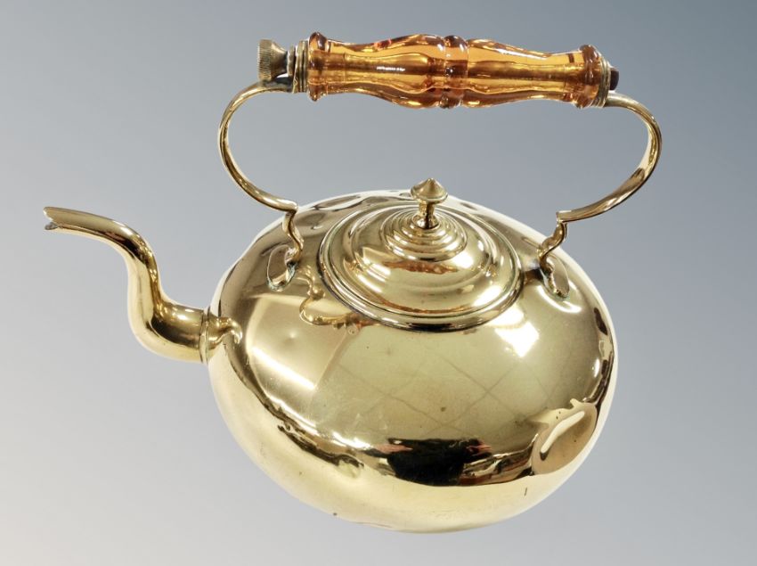 A brass kettle and a Victorian brass footman