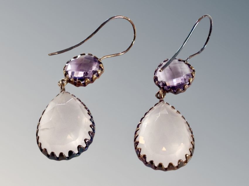 A pair of silver rose quartz earrings