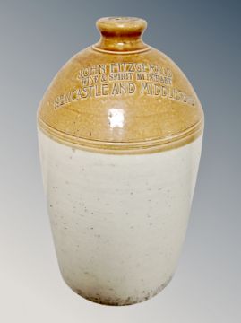 A glazed stoneware flaggon signed John Fitzgerald Wine and Spirit Merchant Newcastle and Middlesborough, height 50 cm