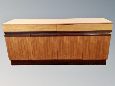 A teak sideboard, fitted cupboards and drawers, length 169 cm