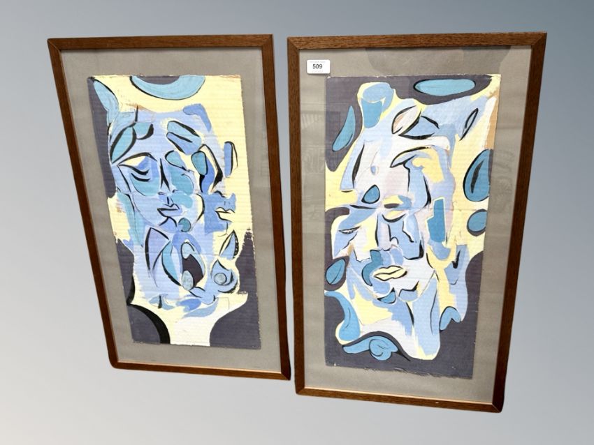 Danish School : Two Abstract portraits, oil on cardboard, each 56 cm x 28 cm (2)