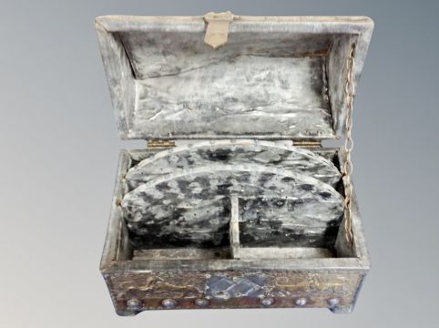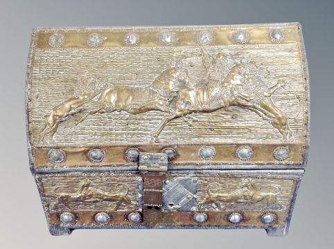 A 19th century Persian Qajar brass embossed domed table box