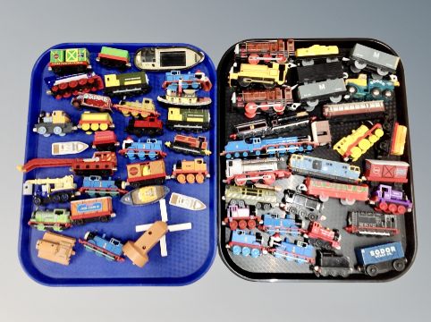 Two trays of Thomas the Tank engine die cast railway wagons and locomotives