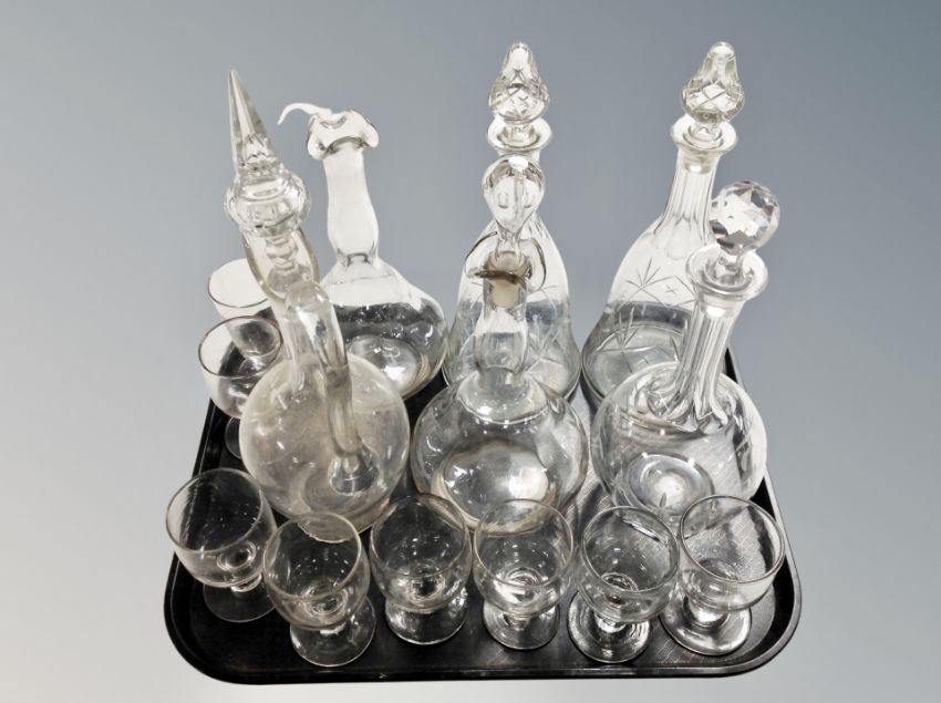 A group of six Scandinavian glass decanters and a quantity of dinking glasses