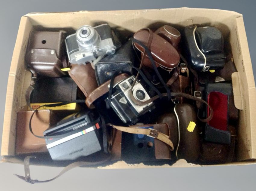 A collection of vintage cameras, Koro, Brownie twin 20, Polaroid super colour 635 etc