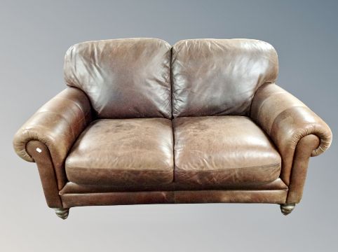 A Barker & Stonehouse brown leather two seater settee, width 169 cm