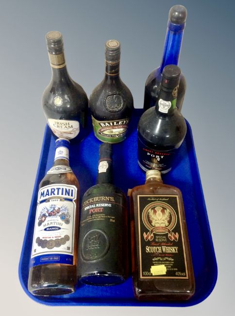 Seven bottles of alcohol - Cockburns Special reserve port, Baileys Irish cream, Aged in oak scotch whisky etc
