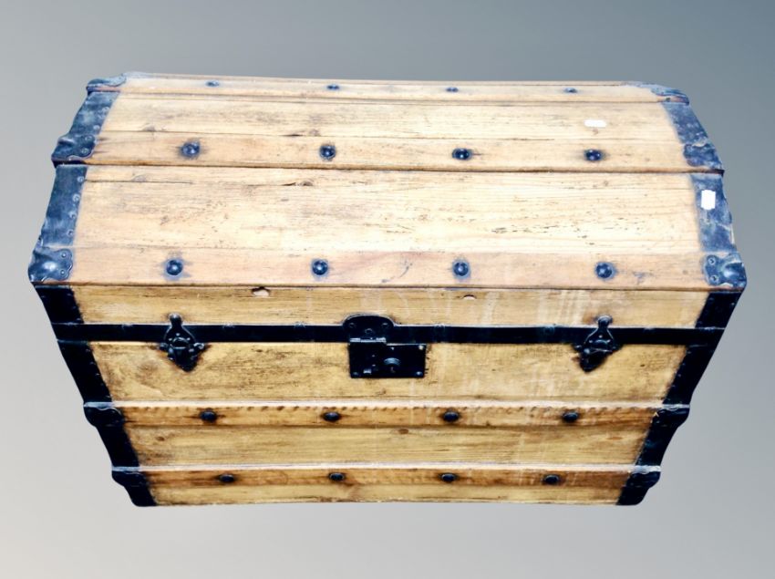An oak metal bound dome topped chest, width 77 cm