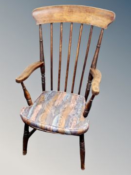 A 19th century elm spindle back armchair