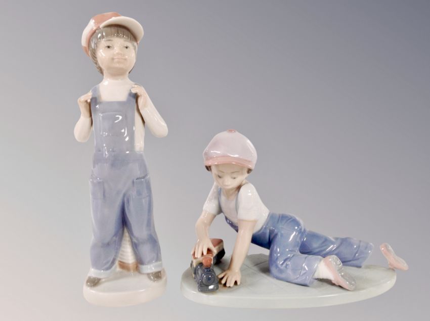 Two Lladro figures 4898 Boy from Madrid and 7619 All Aboard
