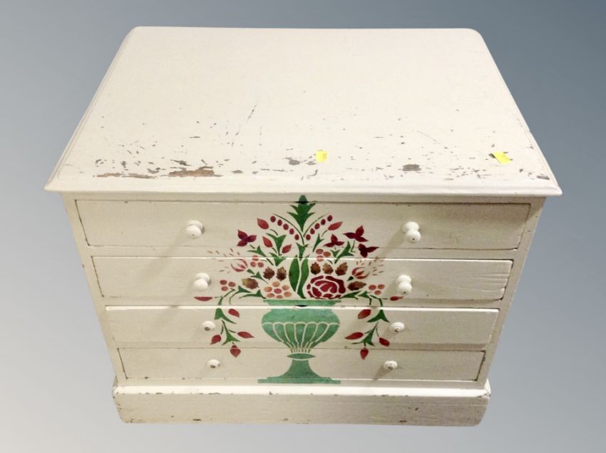 A painted pine low four drawer chest, width 63 cm