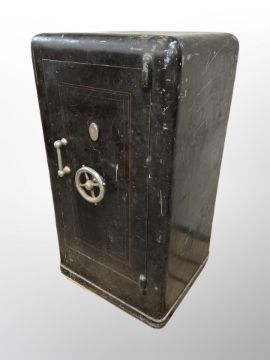 A floor-standing steel safe with key, measuring 101 cm high x 56 cm wide x 51 cm deep