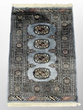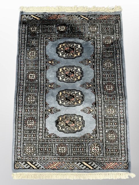 A Lahore Bokhara rug on blue ground 96 cm x 63 cm