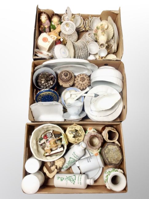Three boxes of Scandinavian ceramics, KPM porcelain dinner ware, kitchen storage jars, jardiniere etc