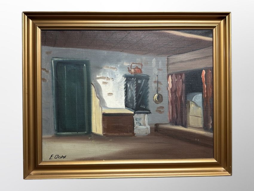 E Dahl (Danish) : A cottage interior, oil on canvas, 40 cm x 30 cm