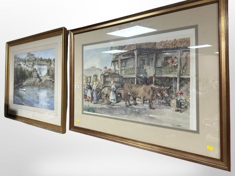 Three gilt framed watercolours by Sturgeon and a further signed print by the same artist (4)