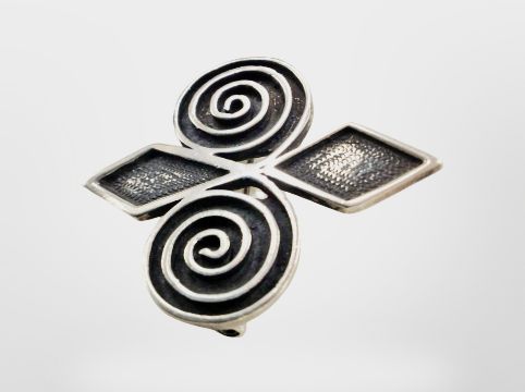 A silver brooch by Ola Gorie, Orkney, length 44 mm