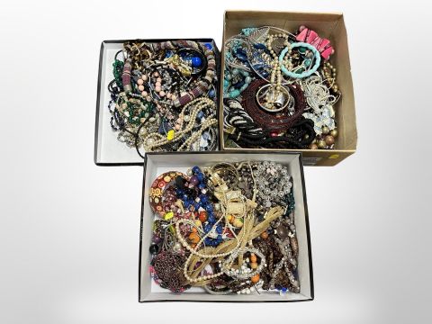 Three trays of costume jewellery, necklaces, cuff bangles and bracelets
